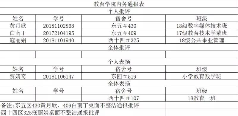 教育学院内务通报表