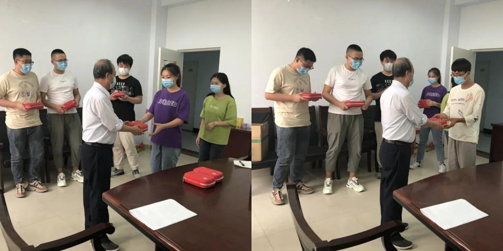 米院长代表学院向返校学生赠送防护大礼包