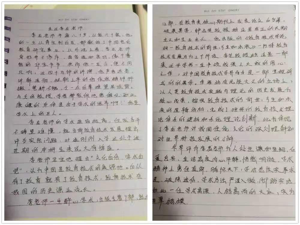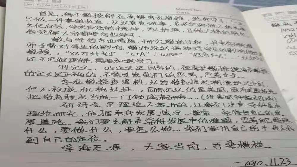 2020年11月23日,2020级教育技术学班就新时代教育技术学科建设暨李龙教授从教六十载学术研讨会进行交流心得体会。