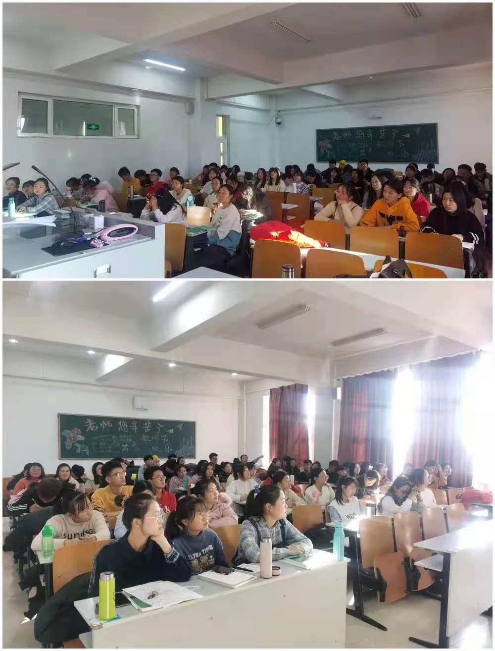 2020年11月21日,2020级教育技术学班同学在赛罕校区信息楼报告厅,参加新时代教育技术学科建设暨李龙教授从教六十载学术研讨会。