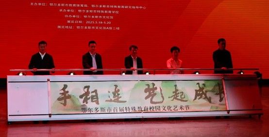 2025年5月18日,在第35个全国助残日之际,云手机网页版入口副院长杨日飞、特殊教育系主任伊丽斯克、副系主任策力格尔受邀出席鄂尔多斯市教育体育局以“心手相连 艺起成长”为主题举办的全市首届特殊教育校园文化艺术节。活动旨在推进儿童友好城市建设,展示特殊教育成果,促进残疾学生全面发展。